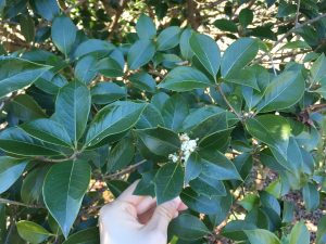 개화한 구골나무가지를 꺽어서 꽃이 진 은목서와 비교해보니 잎이 좀 더 작네요.