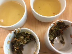 맨 처음 시도했던, 녹차와 금목서의 조합입니다.
